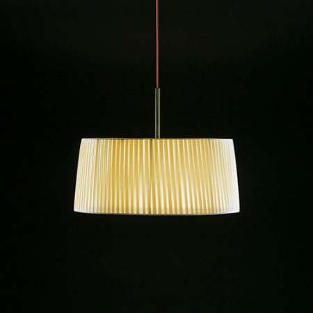 The shade of this pendant is a pleated wrapped ribbon that creates a beautiful texture and play of light when illuminated. Canopy finish in polished chrome. Great over your dining room table or in your living room.