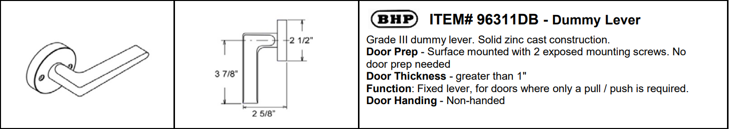 - Specialty finishes match other BHP product category finishes to provide uniform specialty finishes across multiple product categories including Locksets, Bathroom Accessories, Door Hardware and Cabinet Hardware items