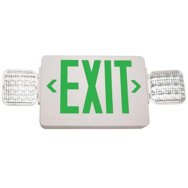 Dual Voltage Combination Exit Sign And Light (2) LED White Housing Green Letter Exitronix